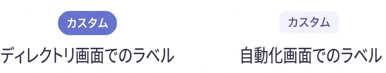標準の属性(氏名、メールアドレスなど)以外に、自社独自の管理項目(例:社員番号、自動化用フラグなど)を追加できる機能です。カスタム項目は[カスタム]ラベルが表示されます。