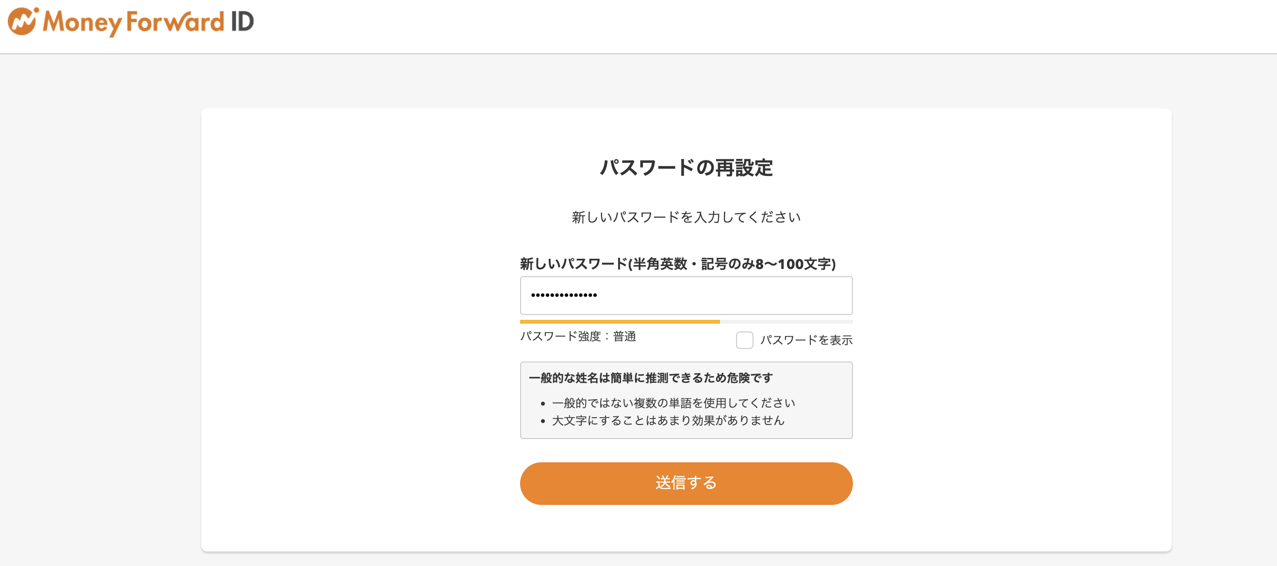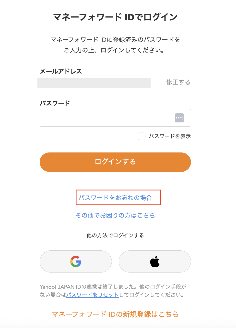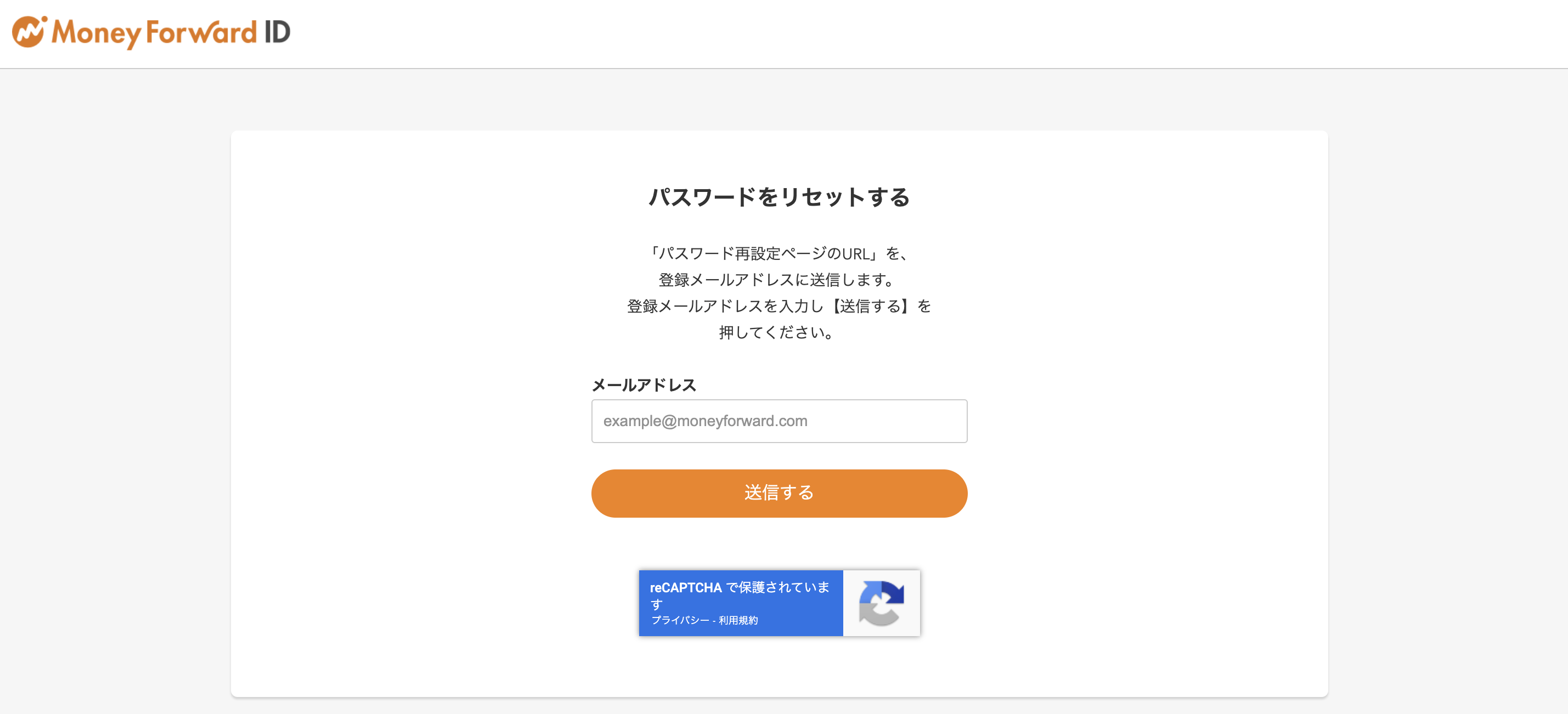 マネーフォワードIDのログインパスワードが不明な場合は、再設定が可能です。