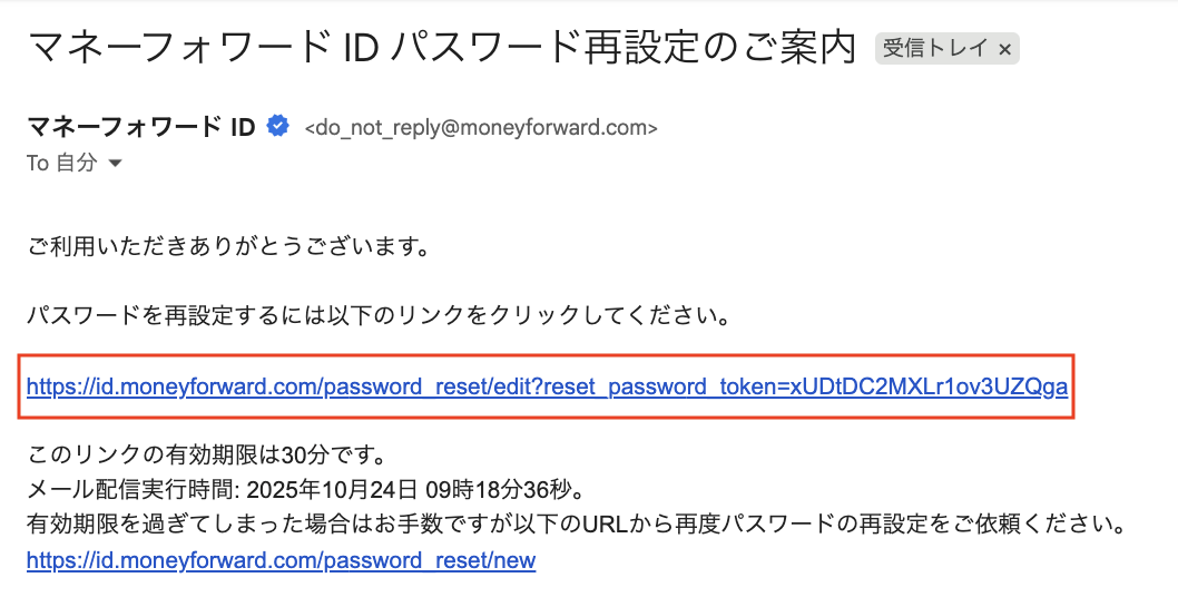 件名 :マネーフォワード ID パスワード再設定のご案内