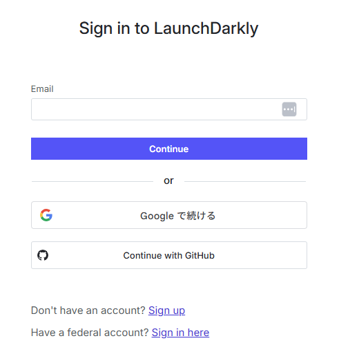 LaunchDarklyログインページにて、メールアドレス・パスワードを入力し、ログインします。