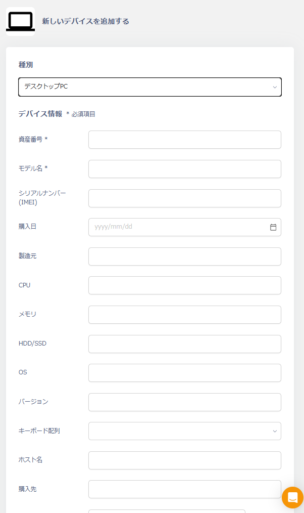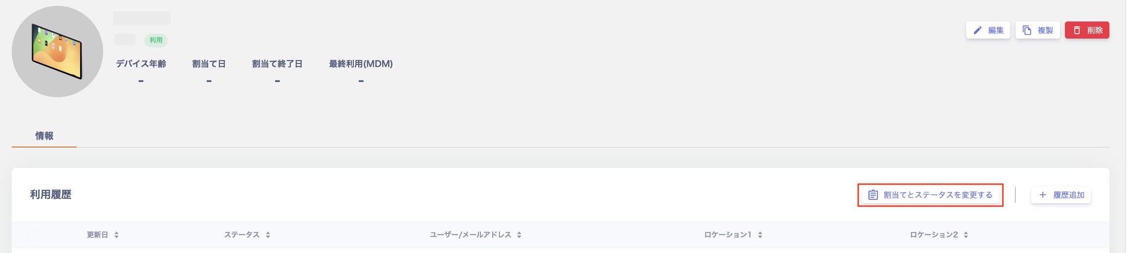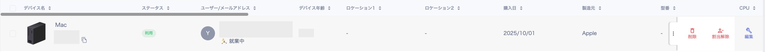 例:割当ての変更(異動や退職に伴うデバイス利用者の変更など)、メンテナンス履歴(デバイスの修理・交換など)、ステータス変更(修理中、廃棄予定など)