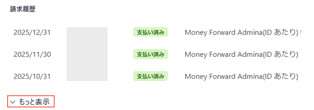 請求履歴を確認できます。「もっと表示」をクリックすると、更に請求履歴が表示されます。