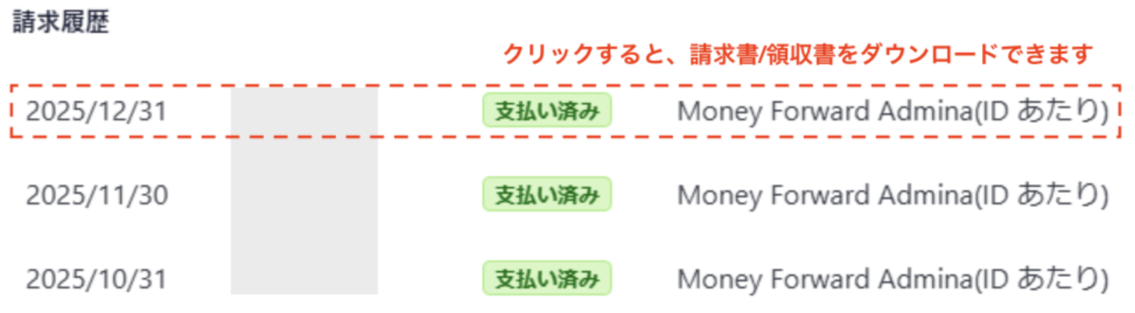 ※弊社側で請求書を別途発行している場合は、こちらの画面に表示されません。