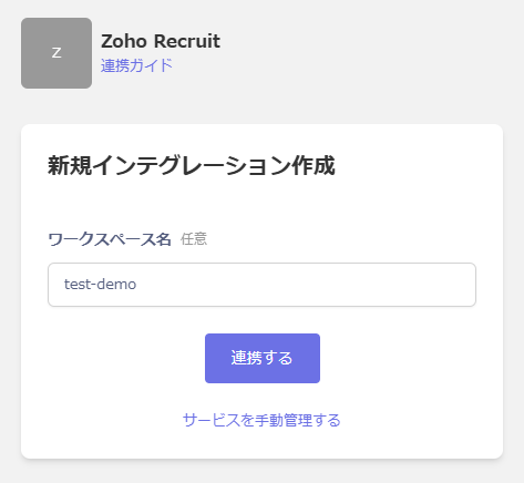 マネーフォワードAdminaのインテグレーション画面にて、Zoho Recruitで検索します。