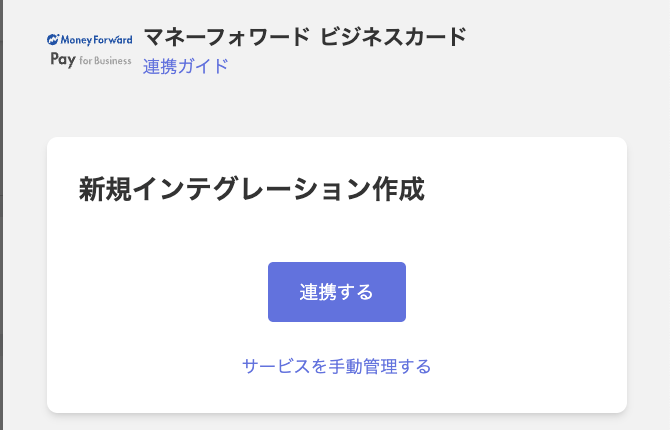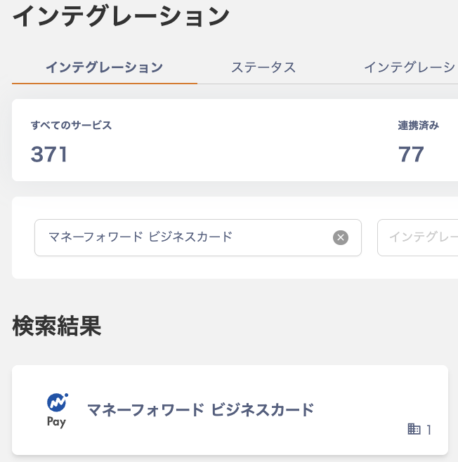 - Adminaのインテグレーション画面にて、「マネーフォワード ビジネスカード」を検索します。
