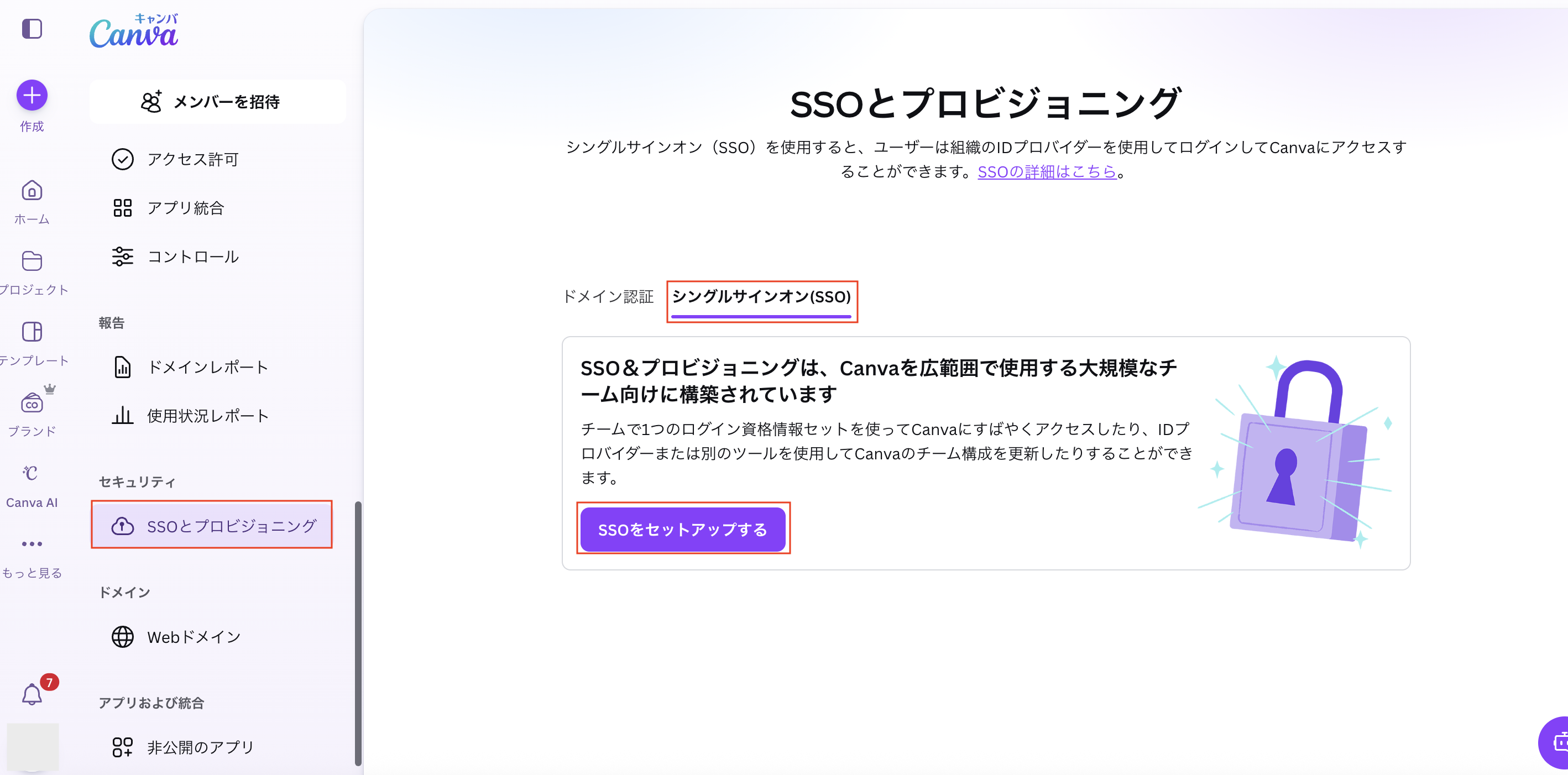 - [SSOとプロビジョニング]をクリックします。