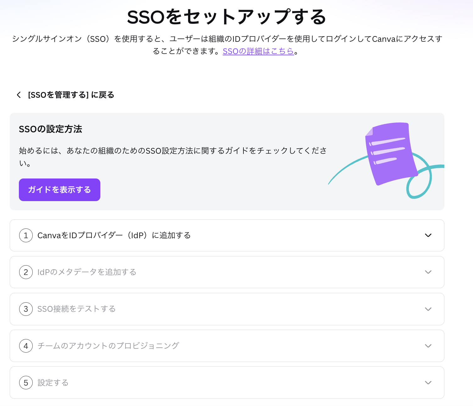 - 「SSOをセットアップする」画面を設定します。
