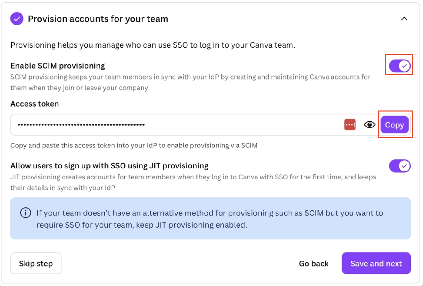 アクセスキーの取得方法はエンタープライズ用にシングルサインオン( SSO )を設定する(外部サイト)もご参照ください。