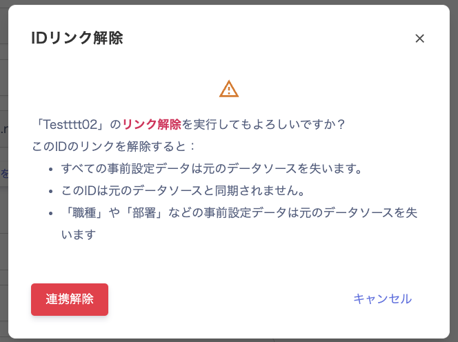 - 「IDリンク解除」画面が表示されますので、記載内容をご確認の上、[連携解除]をクリックします。