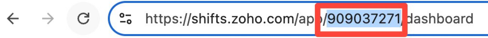 Zoho Shiftsログイン後、URLを確認します。URLの一部が組織IDです。